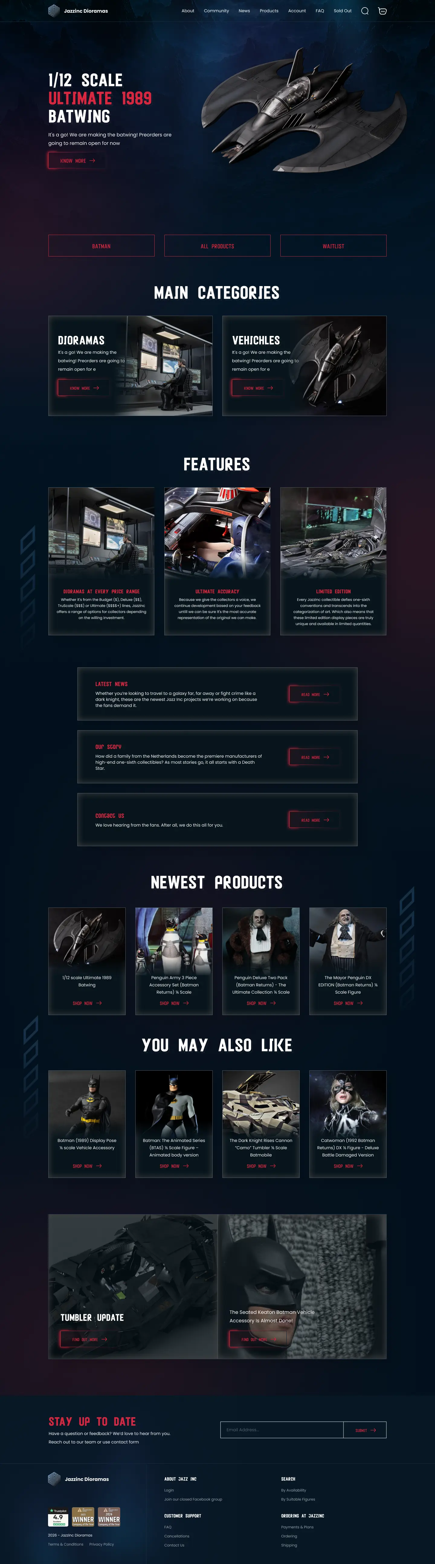 Redesigning a platform for detailed toys and dioramas presents a unique balancing act, especially when leaning into a dark-themed direction. The strategy was to take the client's visual inspirations and craft an interface that feels premium and collector-focused, while ensuring the underlying experience remains inherently fun. The goal was to use the dark UI as a dramatic, cinematic backdrop, allowing the highly detailed dioramas to serve as the absolute focal points.
